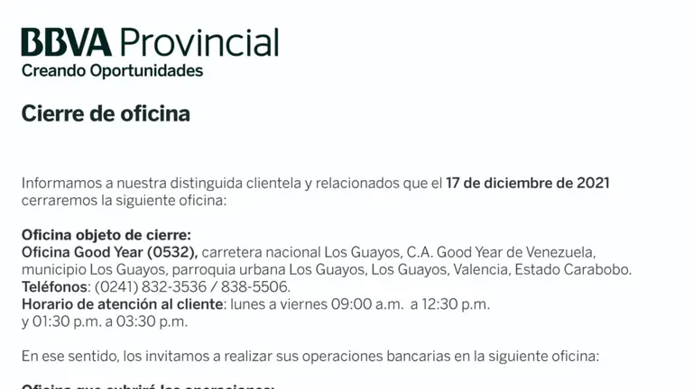 AVISO | CIERRE DE OFICINA GOOD YEAR BBVA 16 DIC 2021