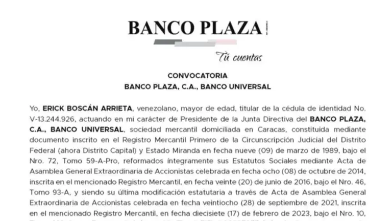 CONVOCATORIA 2 BANCO PLAZA, C.A. 28 FEB 2025