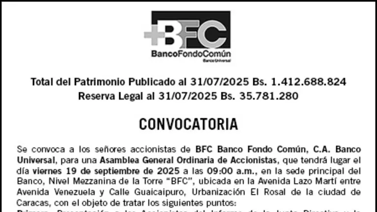 CONVOCATORIA BFC BANCO FONDO COMÚN 22 AGO 2025