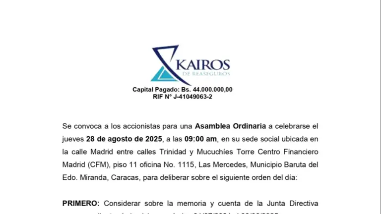 CONVOCATORIA KAIROS DE REASEGUROS 21 AGO 2025