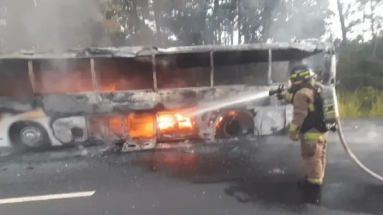 El transporte quedó calcinado y sin techo, según reportan algunos medios locales. Hasta el momento, no se saben las causas del incendio.