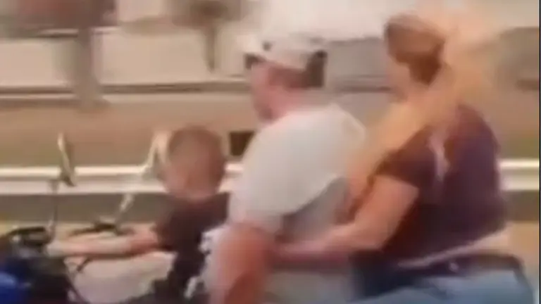 A través de las redes sociales se hizo viral un video en el que aparece un infante al mando de una motocicleta, en compañía de dos adultos, sin embargo, en el material audiovisual se observa cómo los adultos no están controlando el vehículo y tampoco poseen cascos de protección.